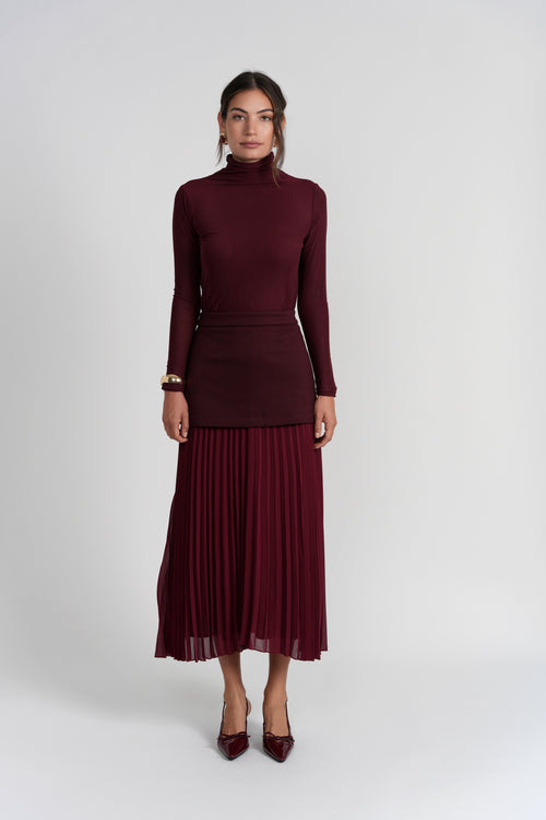 Luum Rose Burgandy Maxi Skirt with Chiffon Pleats
