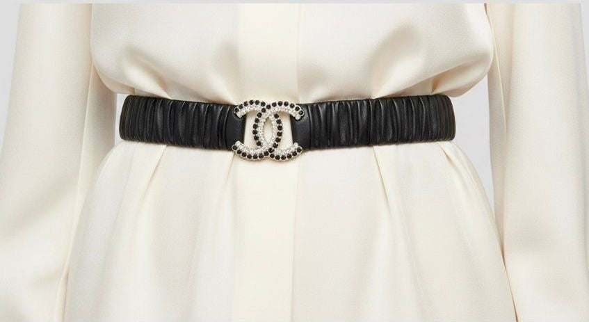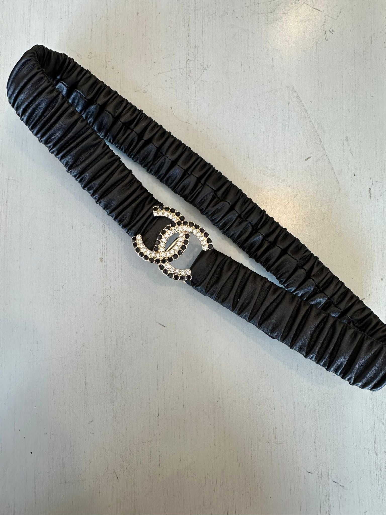 CC Black and White Rhinestone Logo Stretch Belt