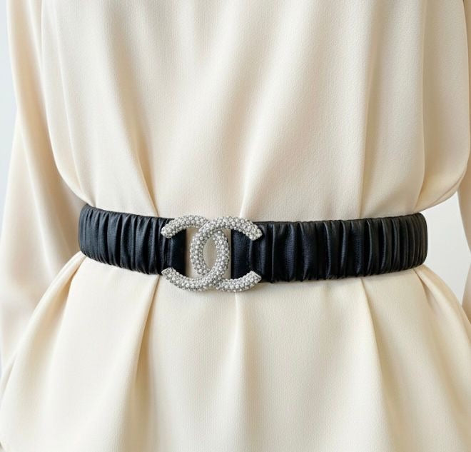 FHTH CC Stretch Belt with Rhinestones on Silver
