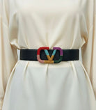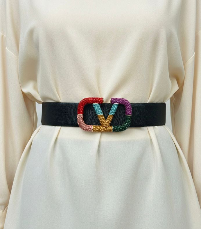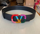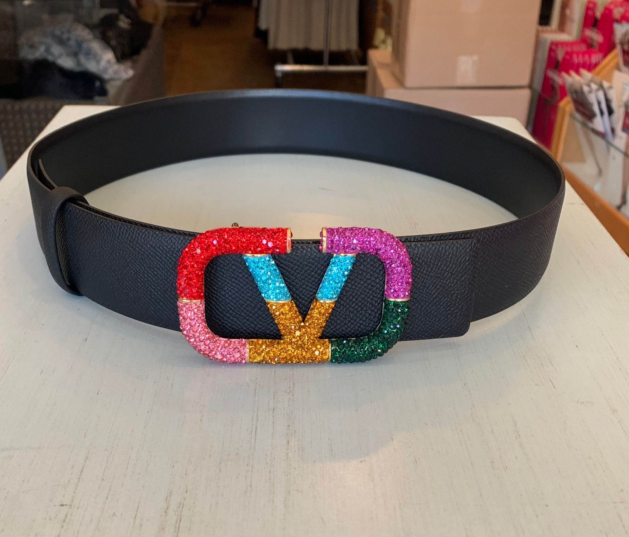 FHTH Valentino Black Belt with Multi Color Rhinestones