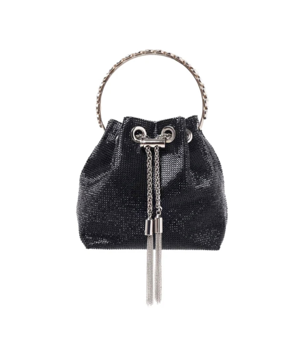 Sondra Roberts Black Lina Drawstring Bag with Gem Handle and Chain Strap