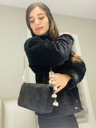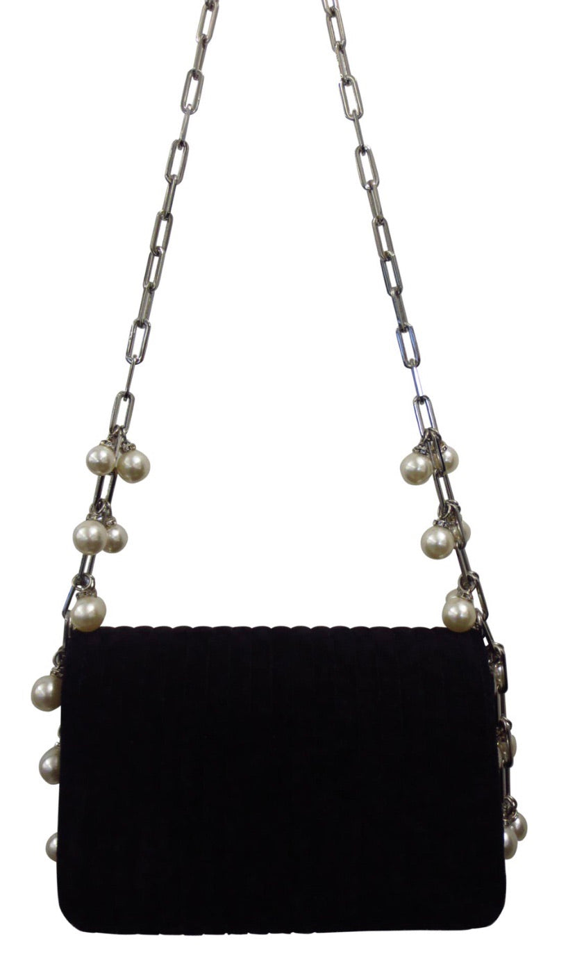 Sondra Roberts Velvet Flap Evening Bag with Pearl Details on Handle