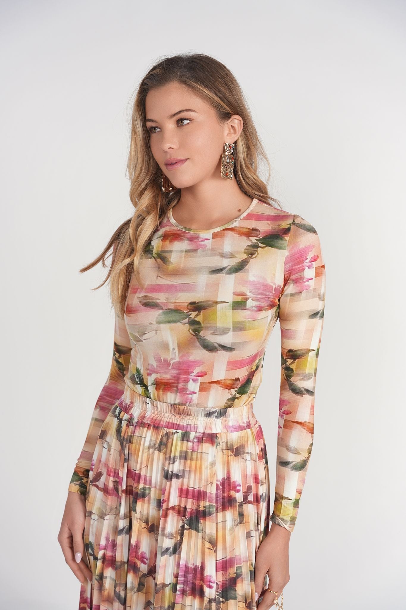 Adina Printed Pixel Floral Long Sleeve Top (coordinating skirt)