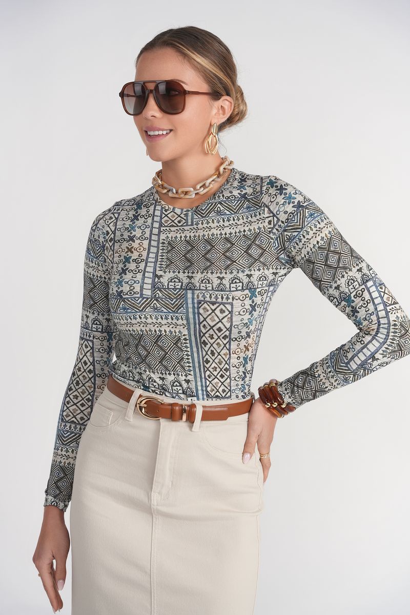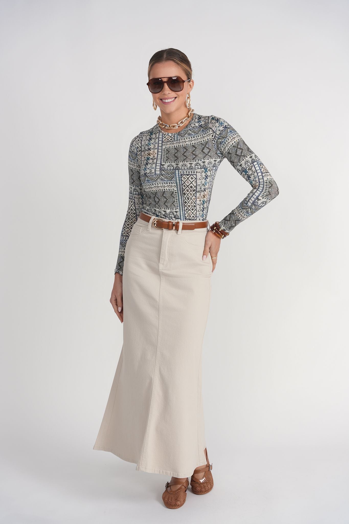Adina Printed Lagos Long Sleeve Top (coordinating skirt)