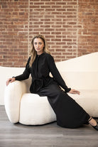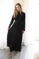 Expertly crafted for both style and comfort, the Byrd Eloise Noir Dress boasts a clean and simple silhouette that exudes elegance. This full-length maxi dress features a front tie belt attached at the waist, providing effortless and flattering fit. Enhance your wardrobe with this timeless and versatile dress.Discounted products are not returnable or exchangeable