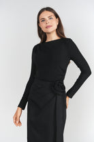 This Adina Mickie Black Top is a versatile and stylish addition to your wardrobe. With its long sleeves and unique sheering detail on one side, this black top offers both comfort and style. Made from high-quality materials, it is perfect for any occasion and can be dressed up or down. Upgrade your wardrobe with this must-have top.Discounted products are not returnable or exchangeable