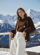 "The Beulah Schiaparelli Knit Cardigan features square gold buttons with unique designs on each one. The brown or black color adds a touch of sophistication, while the knit material provides comfort and warmth. Elevate any outfit with this versatile and stylish cardigan."Knit Cardigan with beautiful button detail