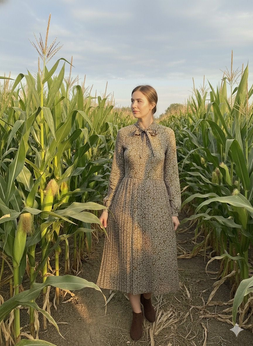 Add an elegant touch to your wardrobe with our Cavalier Pleated Olive Paisley Dress. This dress features delicate pleats and a beautiful bow at the neck, giving you a sophisticated and stylish look. Made from soft and comfortable fabric, it's perfect for both day and night occasions.Cut on waist, self neck tie , back zipper, all around pleated skirt