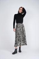 EUX Pleated Chiffon Midi Skirt