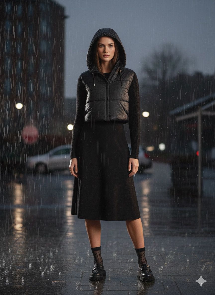 This black quilted combo jacket by Juli is designed for both functionality and style. The drawstring hood and knit sleeves provide added comfort and protection. With snap closures and a quilted design, this jacket is a perfect addition to your wardrobe for any season. Discounted products are not returnable or exchangeable