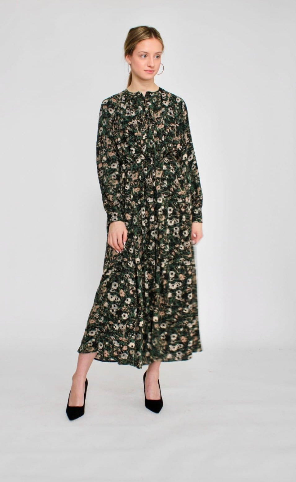 This Maple Cliff Floral Drawstring Midi Dress features a beautiful multi-green color and a versatile drawstring midi design. Ideal for any occasion, this dress offers a perfect blend of style and comfort, making you stand out in a crowd. Add a touch of floral elegance to your wardrobe with this must-have piece.Discounted products are not returnable or exchangeable