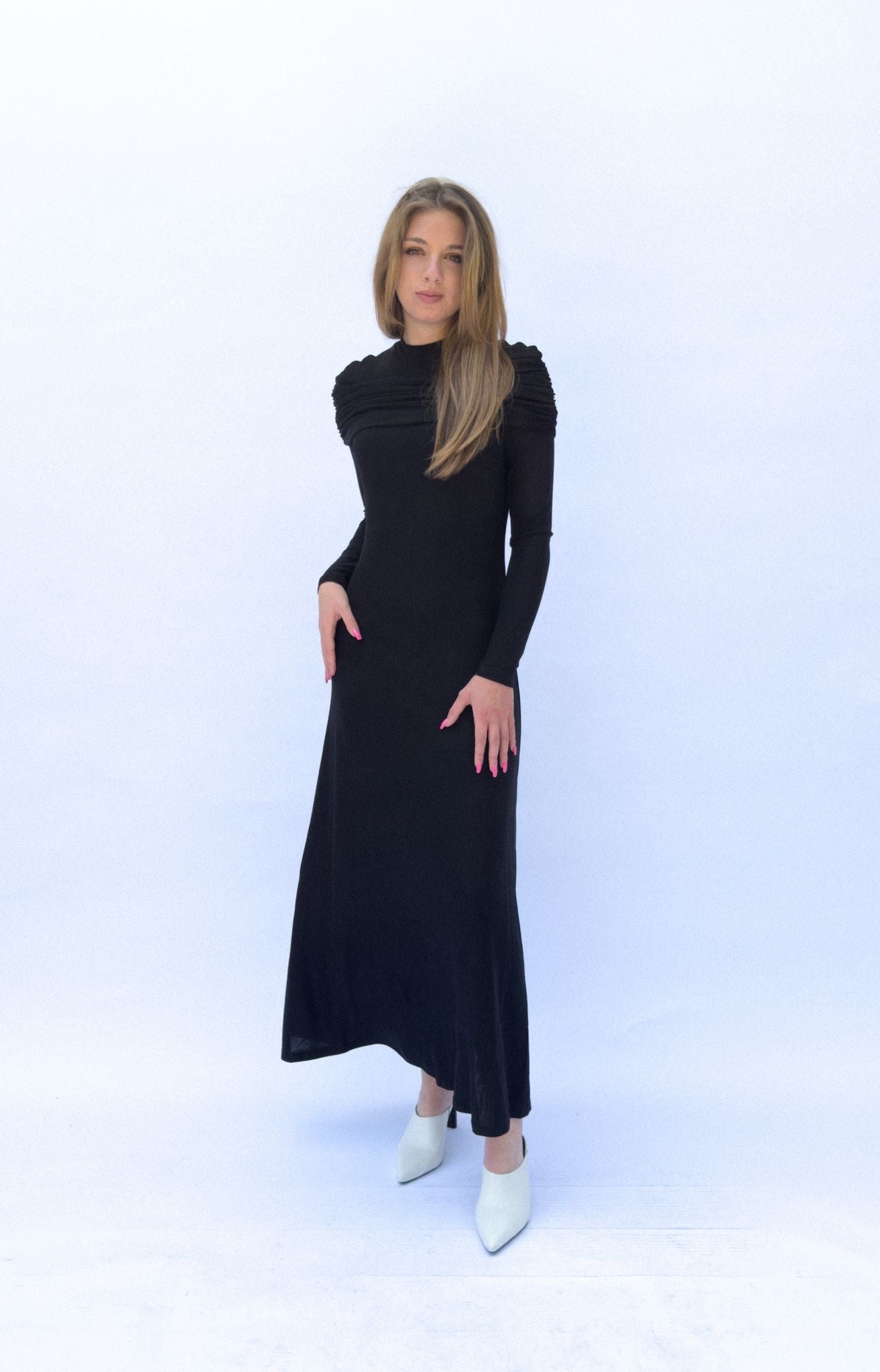 Introducing the Nina Shoulder Drape Black Dress, a sleek and sophisticated option for your next formal event. Made from shimmering black fabric, this long dress features a stunning draping shoulder detail that adds a touch of elegance. Elevate your style game with this statement-making dress.Discounted products are not returnable or exchangeable