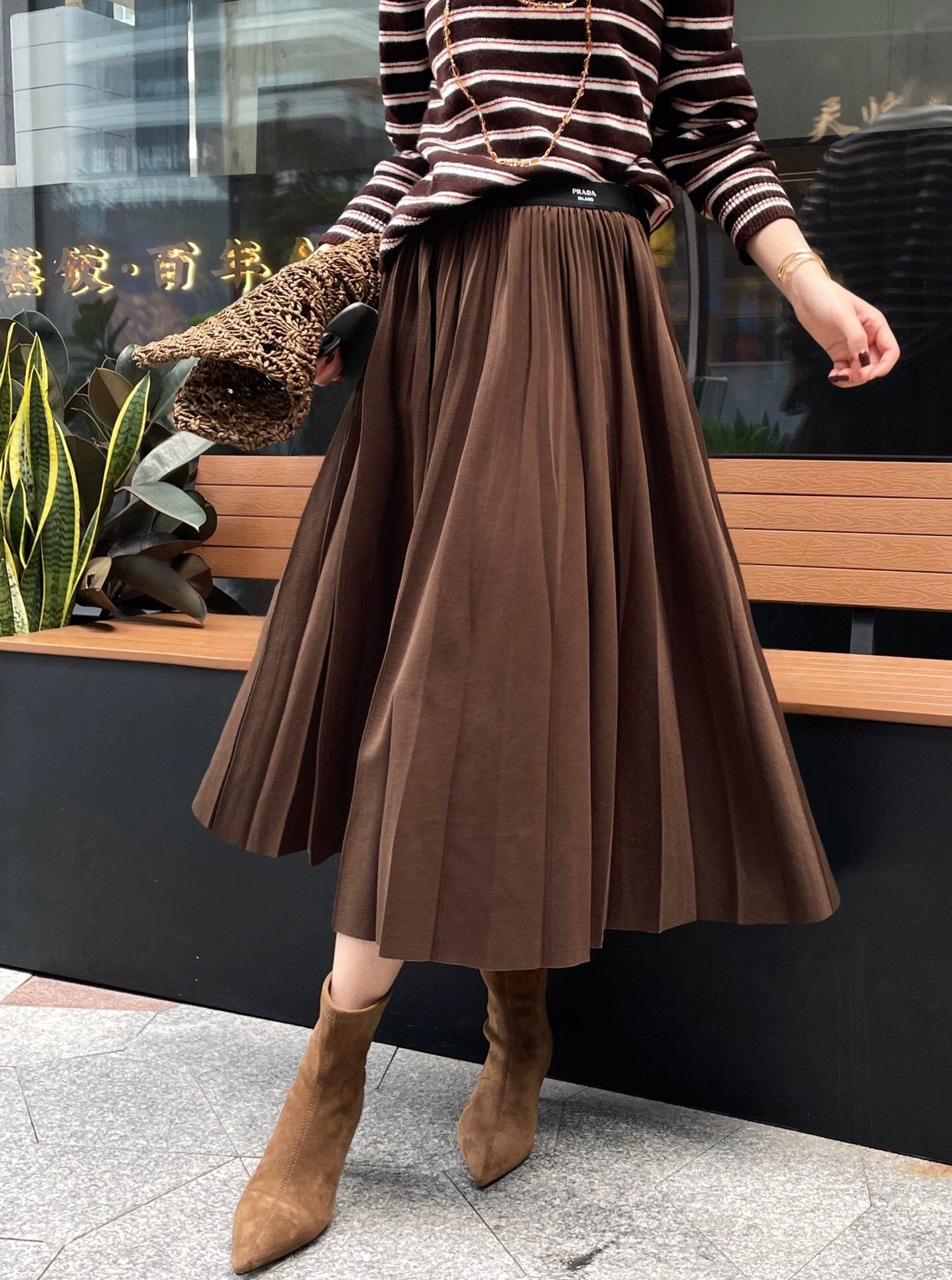 Prada Pleated Skirt with Stretch Waist