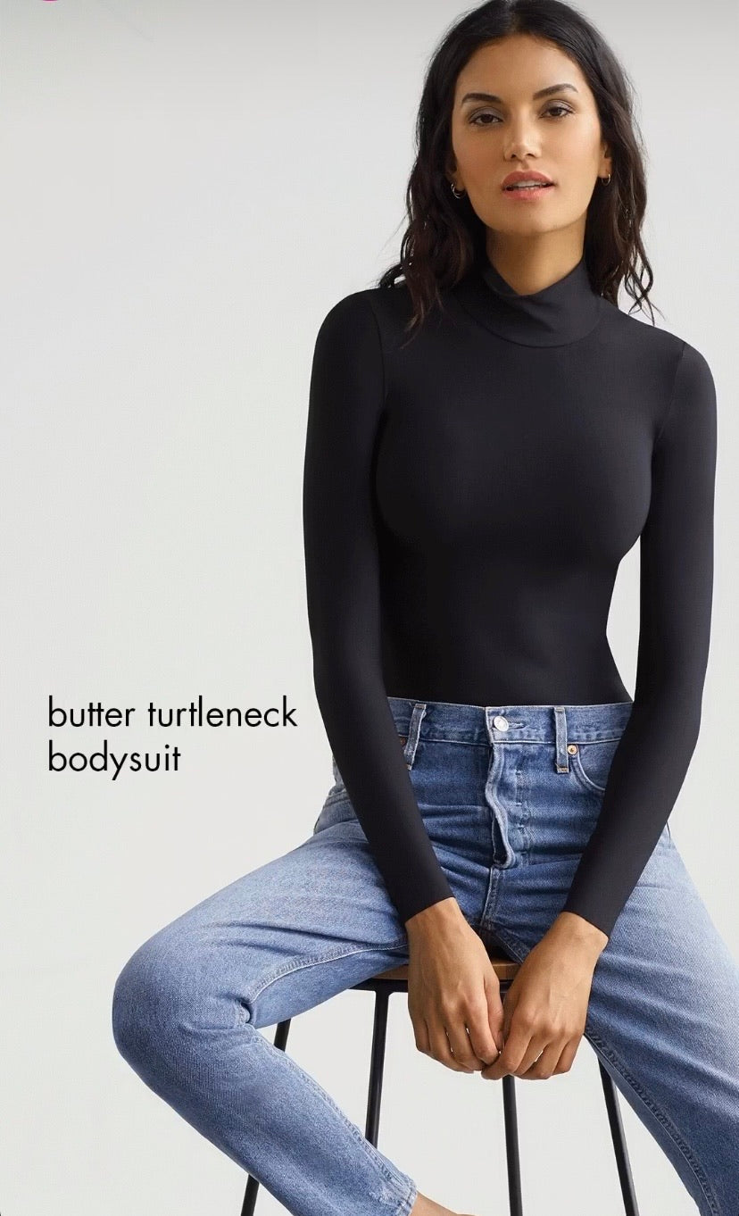 The butter turtleneck bodysuit is as chic as it is soft. Made from a super-soft Austrian modal that hugs the body, and is finished with a thong bottom to leave you line-free. There’s a reason this fabric is a fan-favorite.