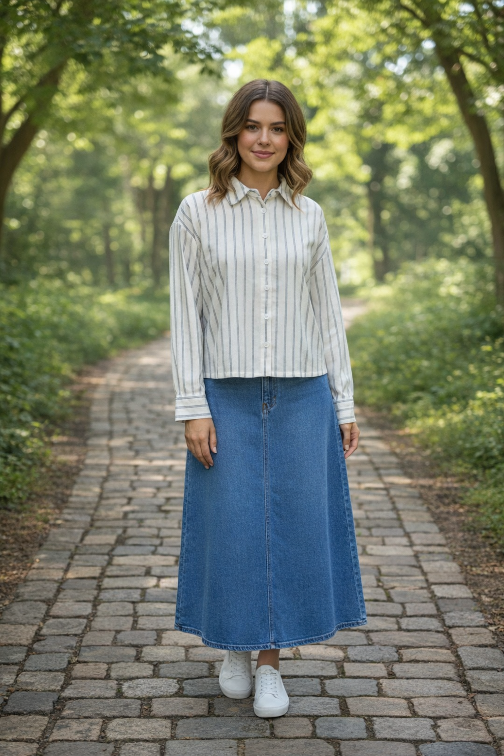 Concept Stripe Denim Skirt