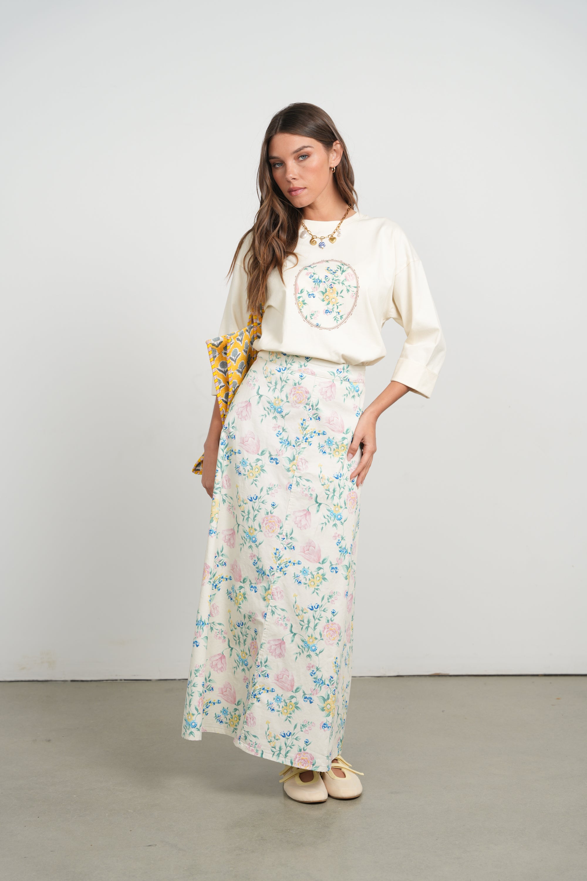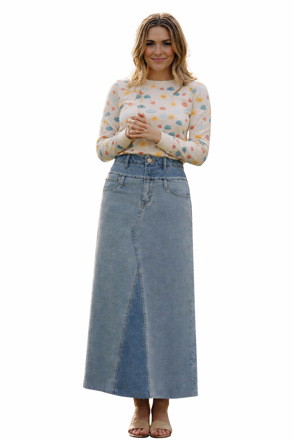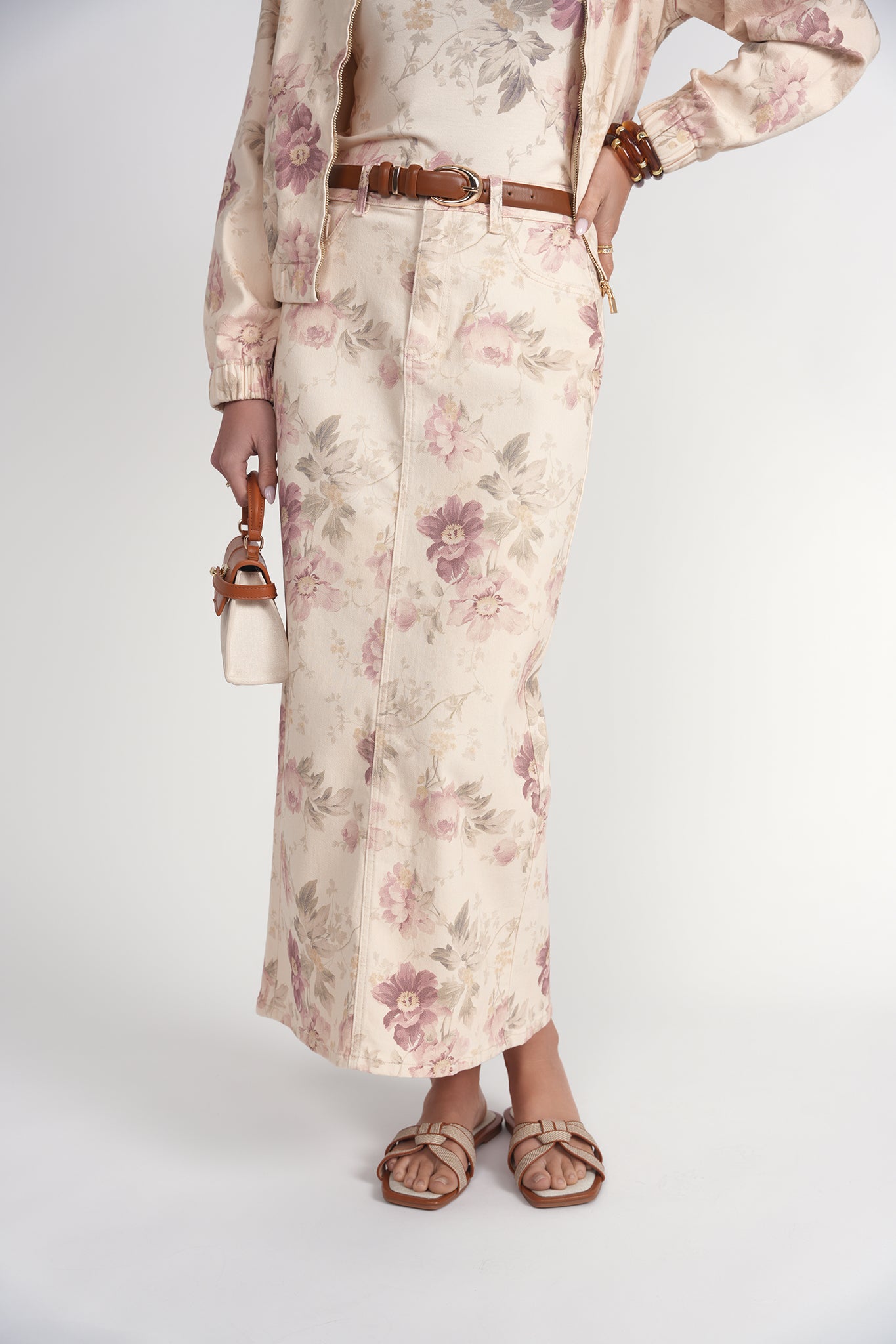 Adina Vintage Floral Denim Maxi Skirt (coordinating top)