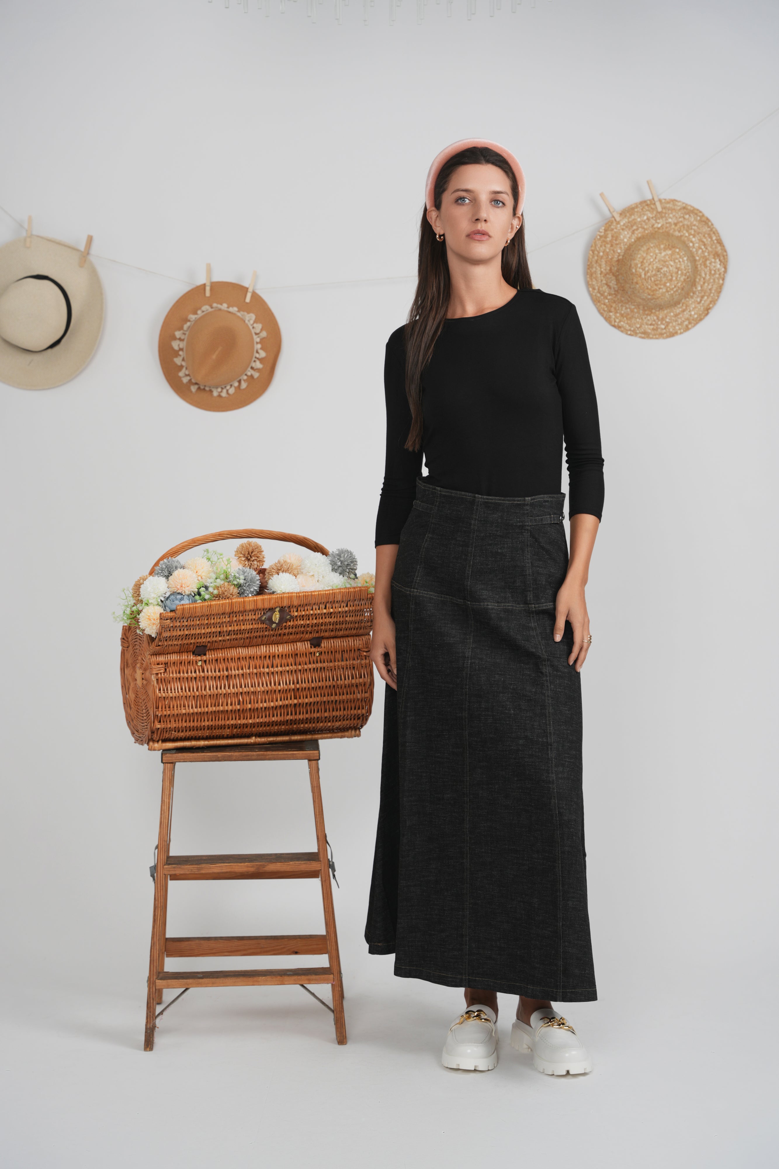Ulla Black Wash Denim Maxi Skirt