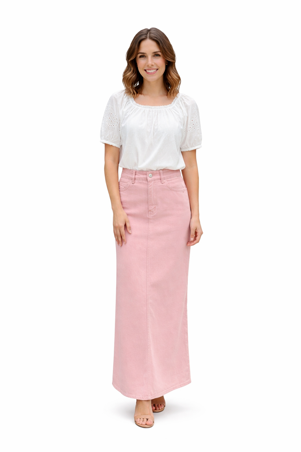 Adina Pink Denim Mermaid Maxi Skirt
