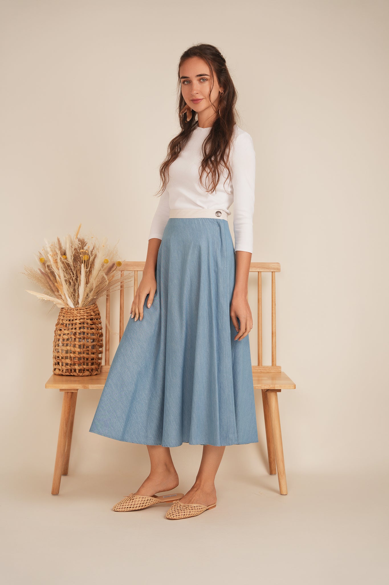 Effortlessly stylish and versatile, the Maxmrket Light Denim with Leather Waistband is a must-have for any fashion-forward individual. Crafted from light denim, this maxi skirt boasts a sleek and modern silhouette, while the white leather waistband adds a touch of sophistication. Perfect for any occasion, this skirt is sure to elevate any outfit.Discounted products are not returnable or exchangeable