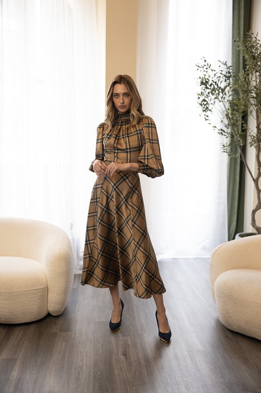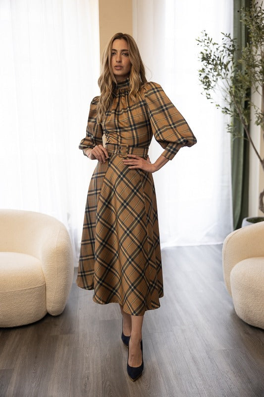 Crafted from high-quality fabric, the Byrd Emmeline Plaid Set boasts a classic plaid design that exudes timeless style. Its gathered neckline and balloon sleeves add a touch of femininity, while the matching belt and A-line fit flatter the figure. Elevate your wardrobe with this elegant and versatile set.Discounted products are not returnable or exchangeable