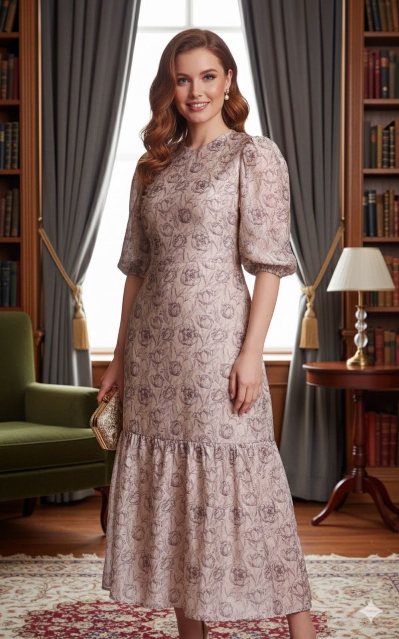 Discounted products are not returnable or exchangeable A vision of timeless elegance, the Venezia Dress is crafted from luxurious satin-back organza, offering a delicate balance of structure and fluidity. Designed for a universally flattering fit, this midi dress features a smocked center-back panel that contours beautifully to the body while ensuring comfort. The ¾-length sleeves add a touch of sophistication, making it perfect for both daytime refinement and evening elegance. The A-line skirt gracefully falls from the waist, with a gathered second tier that creates movement and fullness at the hem. Whether styled with heels for a polished look or dressed down with flats, the Venezia Dressis a versatile statement of effortless sophistication.