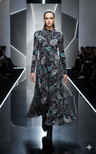 Expertly crafted with a stunning cross-over top design, the Rouge Pur Coutore Maxi Dress features a pleated skirt with a sophisticated black, white, and mint print. Elevate your style with this elegant and versatile dress, perfect for any occasion.Discounted products are not returnable or exchangeable