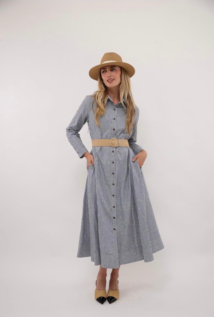 Byrd Icon Pinstripe Dress with Belt