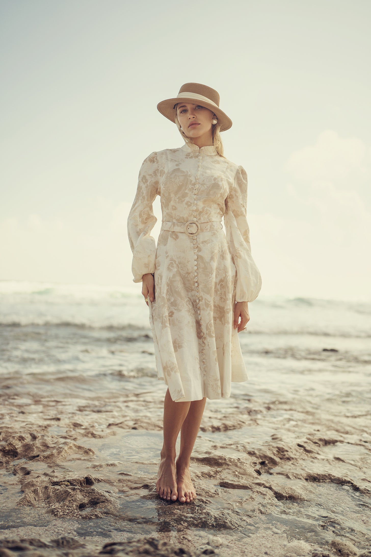 Effortlessly stylish and comfortable, the Ellie Makir Linen Belted Dress is a must-have for any occasion. Crafted from luxurious linen, this dress features an elegant floral design in ivory colors. With a button-down front and a chic belt included, this dress is both fashionable and versatile. Elevate your wardrobe with this expertly crafted piece.Discounted products are not returnable or exchangeable