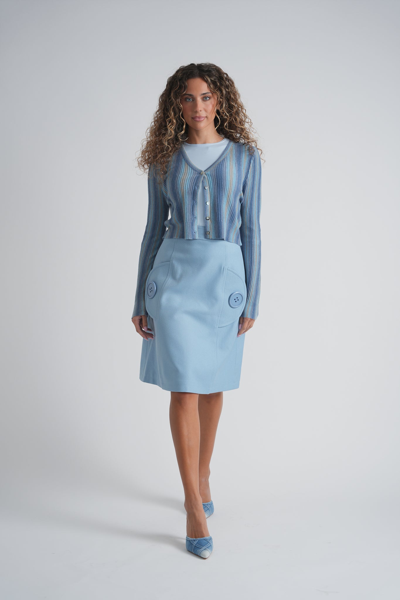 Embrace the refreshing hues of summer with this stylish cardigan, featuring a beautiful gradient of blue shades that evoke the calm of the sea and sky. Crafted from a lightweight, breathable fabric, this cardigan offers a relaxed fit, perfect for layering over your favorite summer outfits. The subtle color transitions from soft sky blue to deeper ocean tones, adding a touch of tranquility and elegance to any look. Whether you're dressing up for a cool evening or layering over a casual tee or sundress, this cardigan is the perfect versatile addition to your summer wardrobe.
