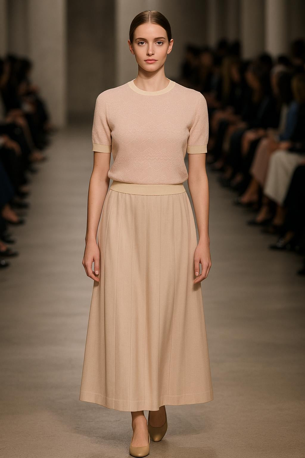 Ivory pleated maxi skirt with tulle-inspired flow