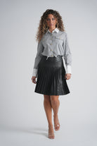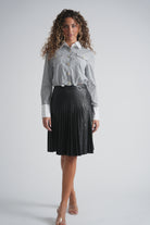 Elevate your wardrobe with this perfectly tailored striped blouse, designed to offer both sophistication and style. The classic stripe pattern adds timeless appeal, while the gold buttons  provide a touch of luxury and refinement. The blouse is finished with a bottom drawstring that allows you to adjust the fit, creating a flattering silhouette that can be cinched to your preference. Ideal for both professional and casual occasions, making it an essential piece for every fashion-forward wardrobe. Discounted products are not returnable or exchangeable
