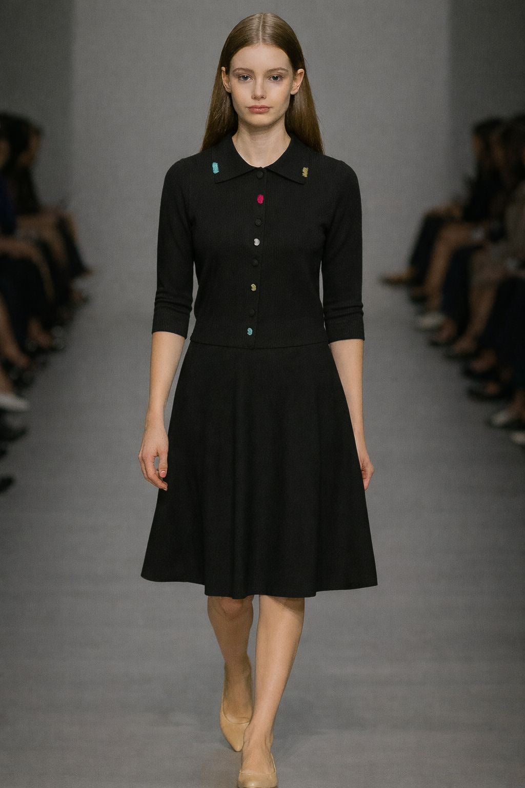 Chic, modern, and unmistakably FrontRow — this black knit top is designed to elevate your everyday wardrobe with effortless sophistication. Featuring a softly tailored silhouette, a refined pointed collar, and this piece blends classic structure with a fresh, fashion-forward twist.