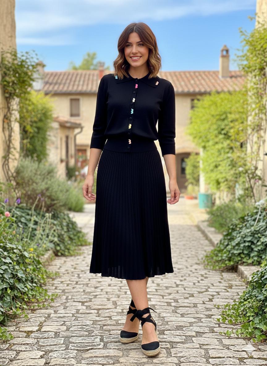 Playful pops of color at the buttons add a unique statement while keeping the design clean and polished. The fine knit offers a smooth, flattering fit that pairs perfectly with skirts, denim, or tailored pieces