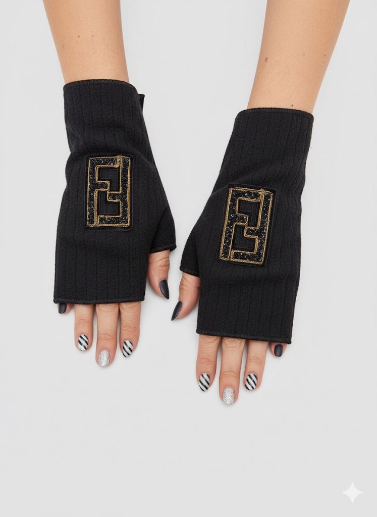 FHTH Softest FF Black Sequin Logo Fingerless Gloves