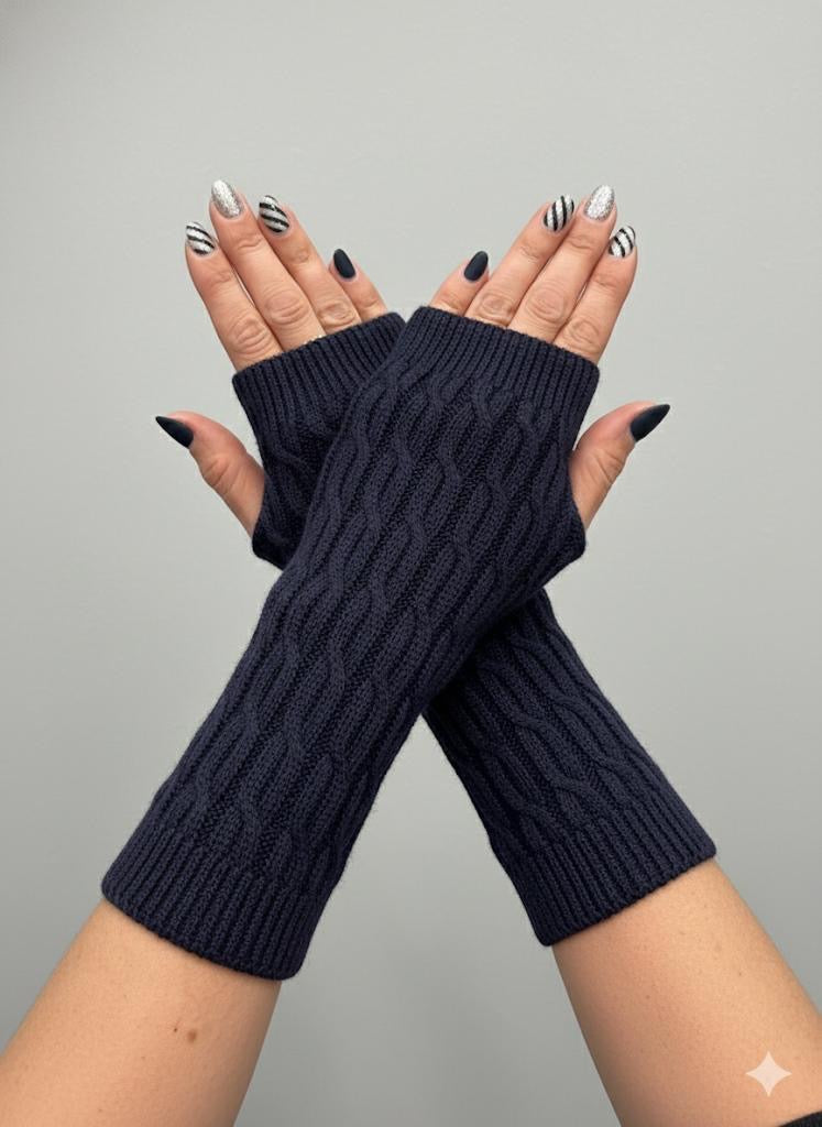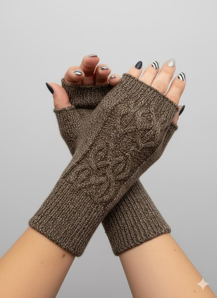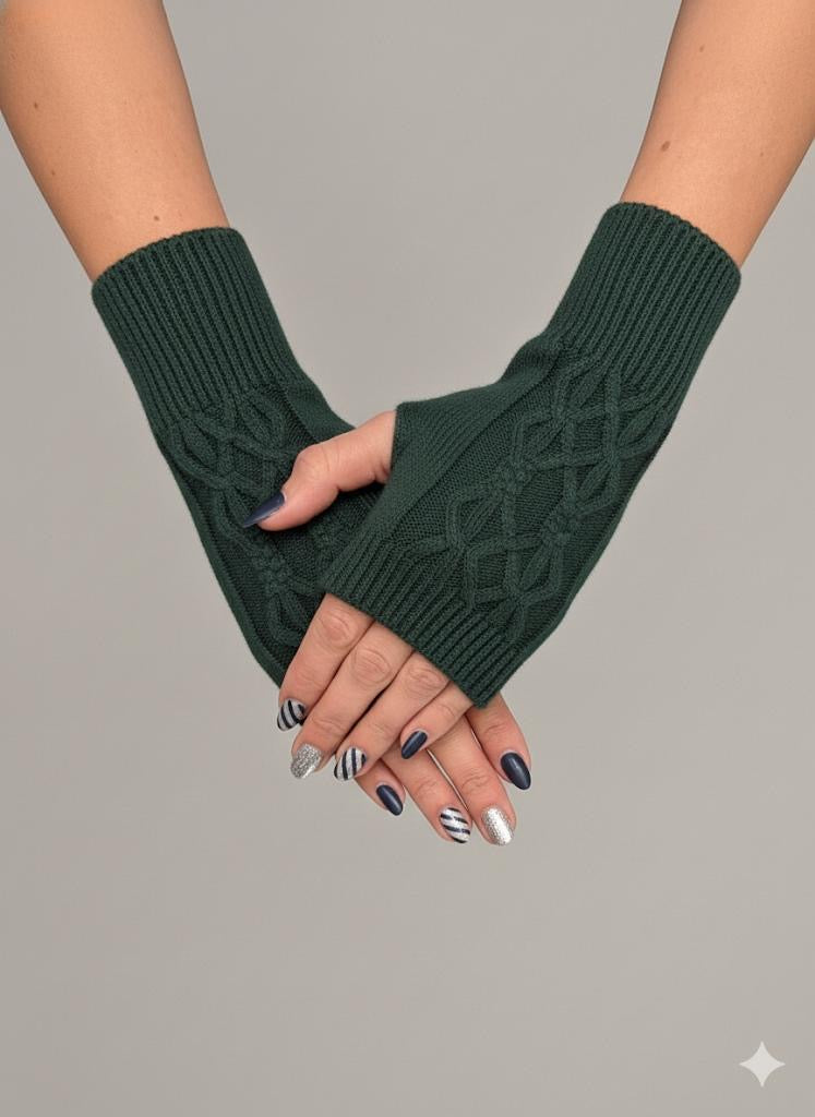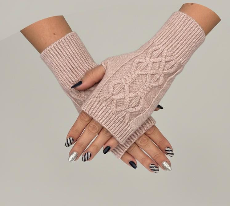 FHTH Narrow Cable Ribbed Fingerless Wool Glove