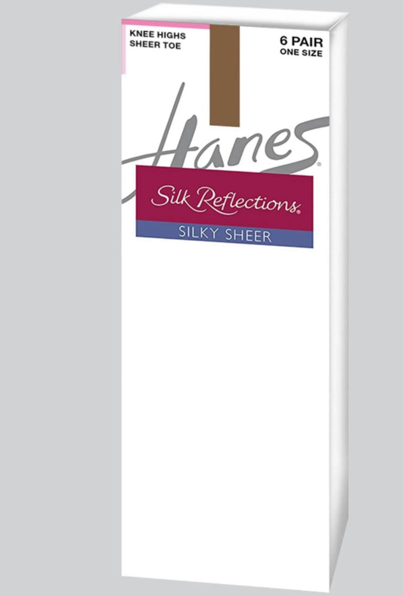 Hanes Silk Reflections Knee Highs Sheer Toe 6 Pk