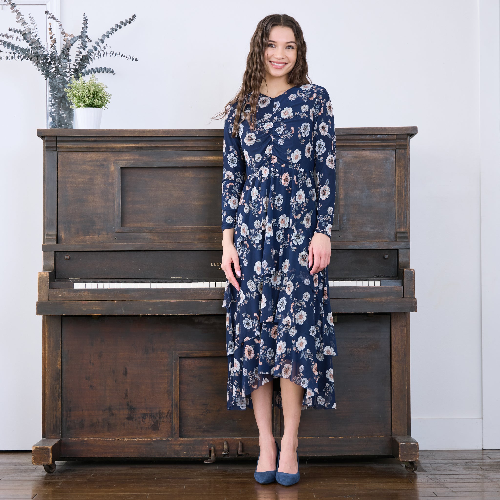 Expertly crafted, Japparel's Aurura Navy Floral Mesh Ruched Dress combines elegant floral patterns with functional ruching for a flattering fit. The dress's layered design adds a touch of sophistication, while the navy color exudes timeless style. Elevate any event with this versatile dress.Discounted products are not returnable or exchangeable