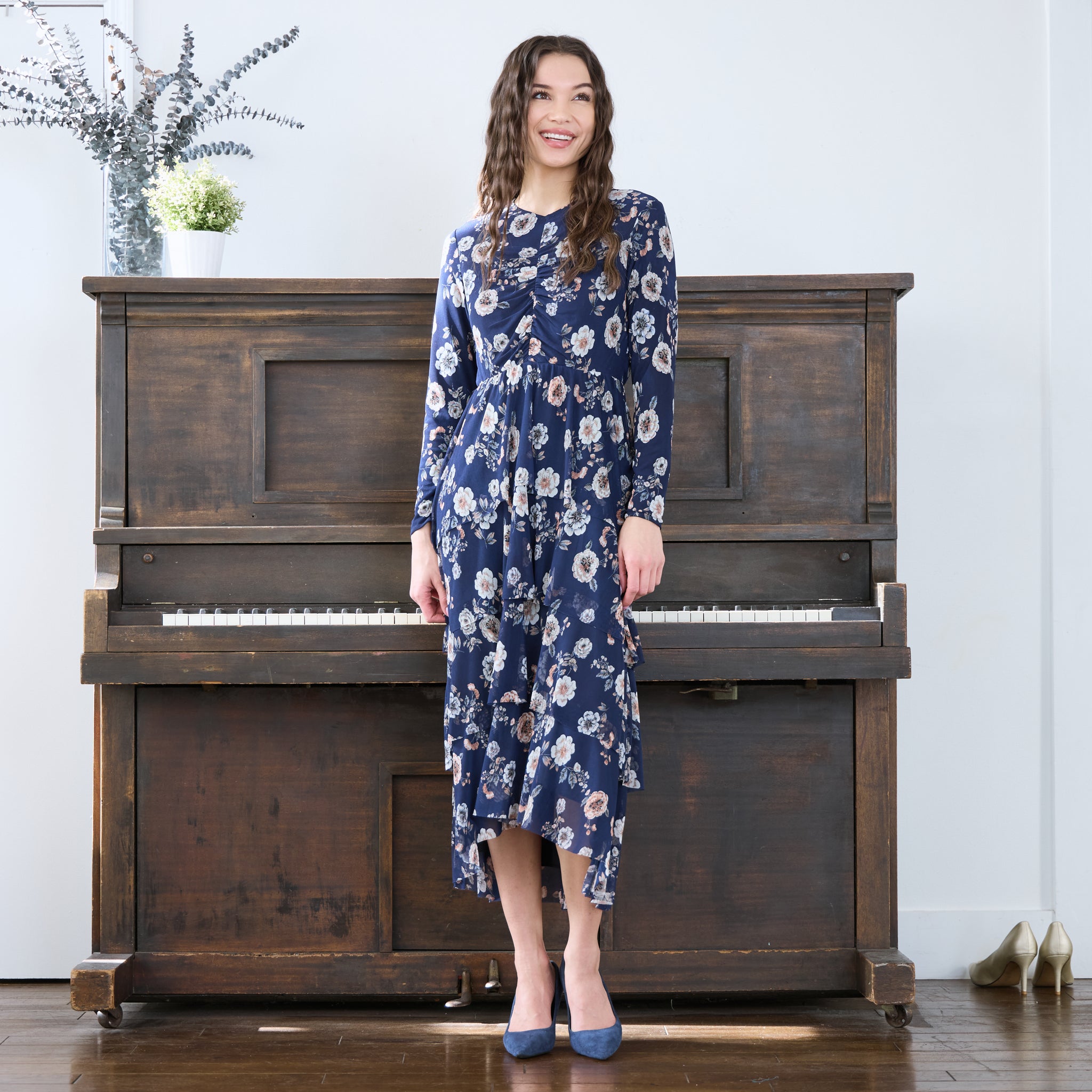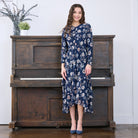 Japparel Aurura Navy Floral Mesh Ruched Dress