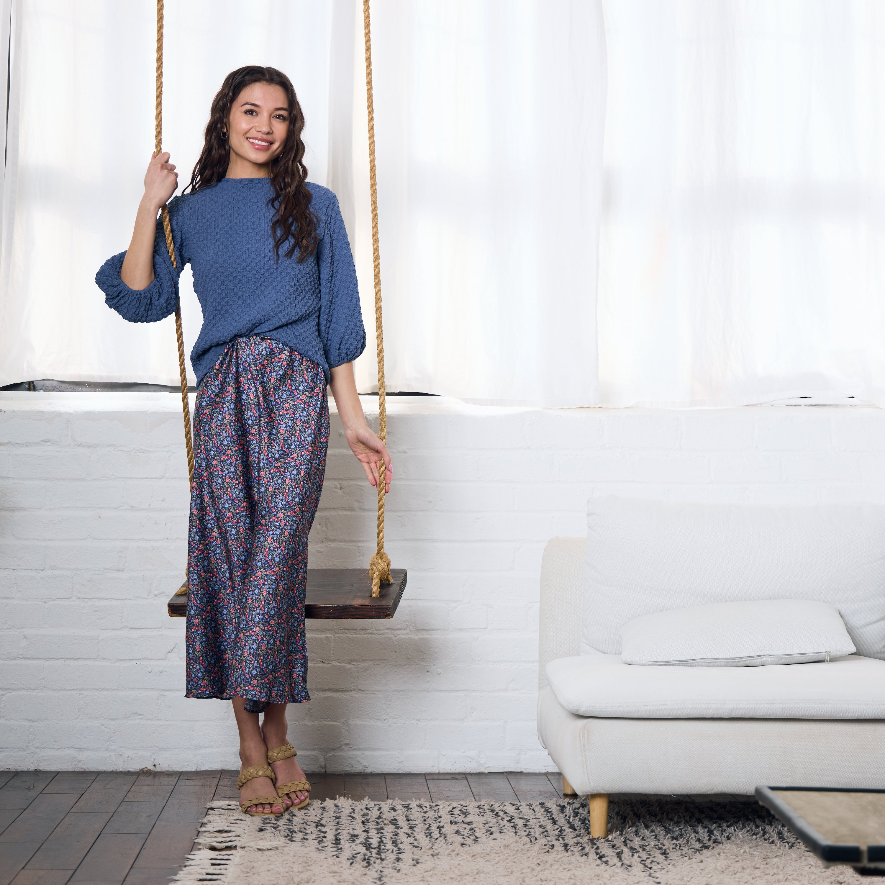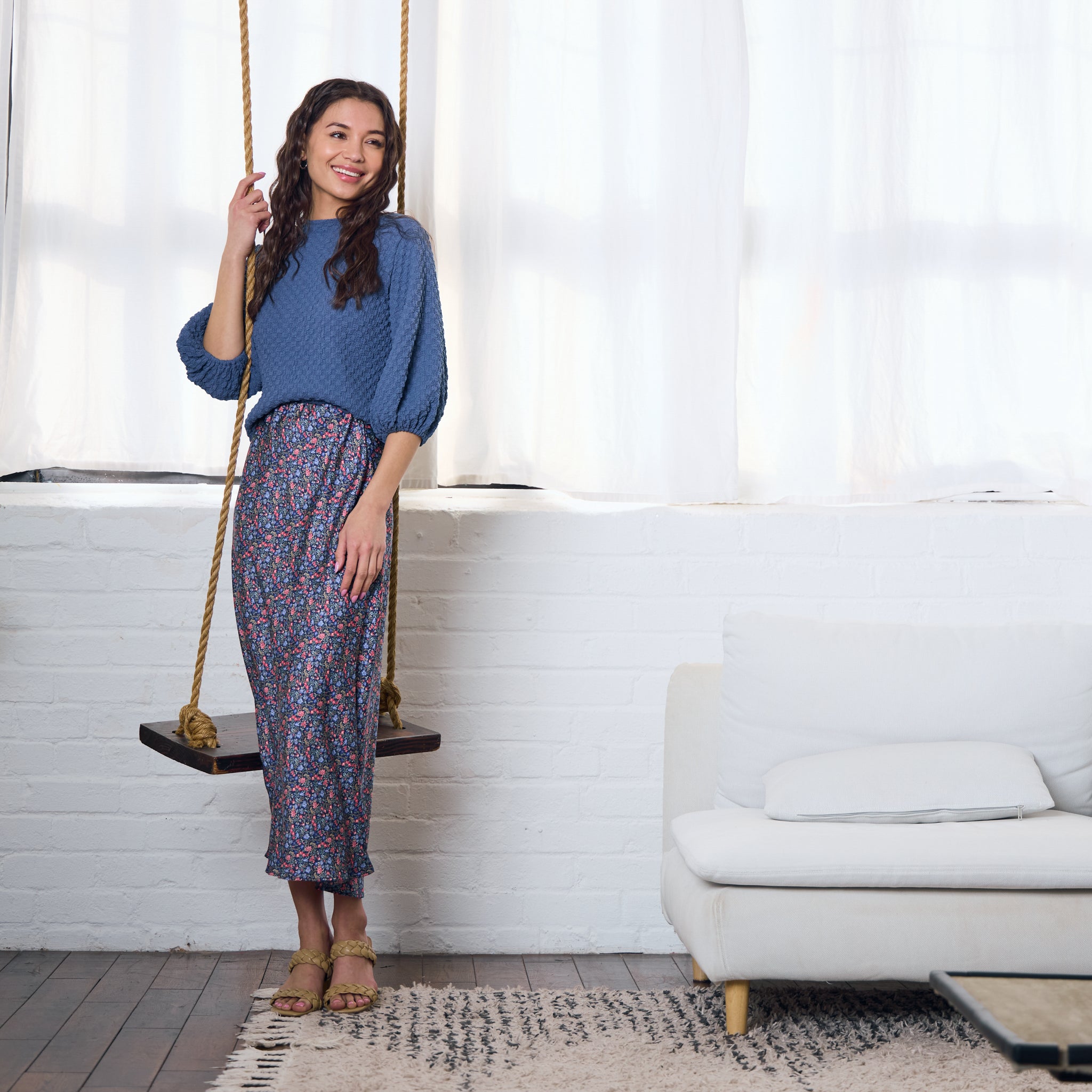 Expertly crafted from luxurious satin, the Japparel Cosmo Blue Floral Tulip Skirt showcases a vibrant floral print in shades of blue. With its feminine tulip shape, this skirt effortlessly combines style and comfort for a chic and versatile addition to any wardrobe.Discounted products are not returnable or exchangeable
