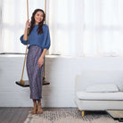 Japparel Cosmo Blue Floral Satin Tulip Skirt