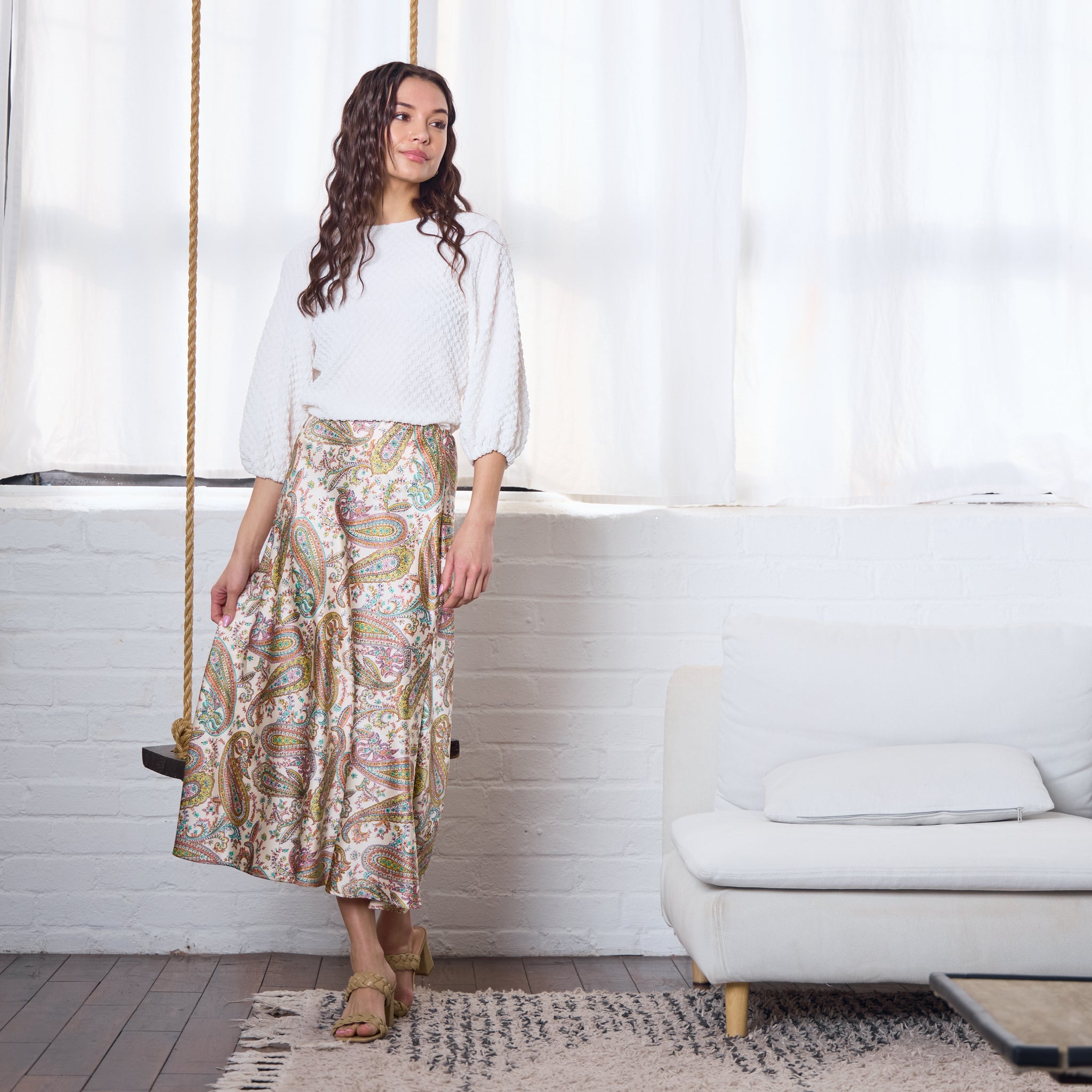 Japparel Cosmo Ivory Paisley Tulip Skirt