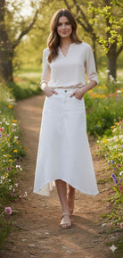 Japparel Janice White Asymmetrical Raw Hem Denim Skirt