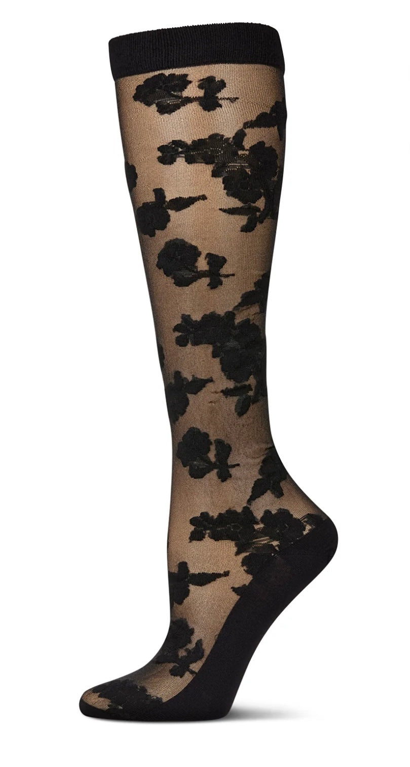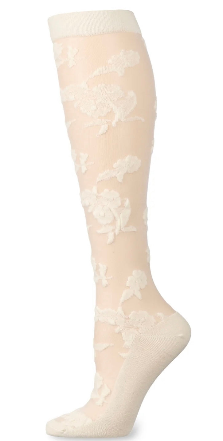 Memoi Floral Fantasy Sheer Knee High
