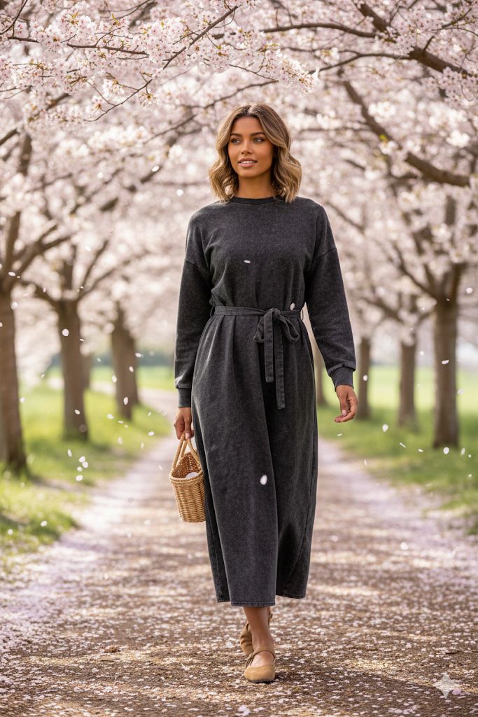 This black washed sweatshirt dress features a belted waist for a flattering and fashionable silhouette. Made with comfortable and durable material, this dress is perfect for any casual or dressy occasion. Elevate your wardrobe with this versatile and stylish piece.Discounted products are not returnable or exchangeable