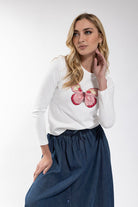 This white T-shirt features a graphic butterfly design on the front, adding a touch of whimsy to your wardrobe. Made from comfortable and breathable fabric, this top is perfect for everyday wear and can easily be dressed up or down. Embrace your playful side with the Latitude Butterfly Graphic Top.Discounted products are not returnable or exchangeable