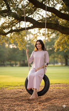 Discounted products are not returnable or exchangeable Introducing the Latitude Oversized T Shirt Dress - perfect for a chic yet comfortable look. Available in two dreamy colors, dust blue and lilac, this dress features an oversized fit and 3/4 sleeves for a relaxed and stylish look. Upgrade your wardrobe today with this versatile and on-trend piece.l