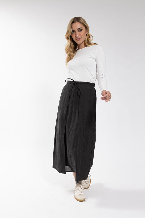 The Monn Tie Panel Linen Skirt is a must-have addition to any wardrobe. Crafted from high-quality linen, this skirt features a stylish tie panel in the front, adding a touch of sophistication to any outfit. Available in sand and black, it offers versatility and effortless elegance. Upgrade your style with this timeless piece.Discounted products are not returnable or exchangeable