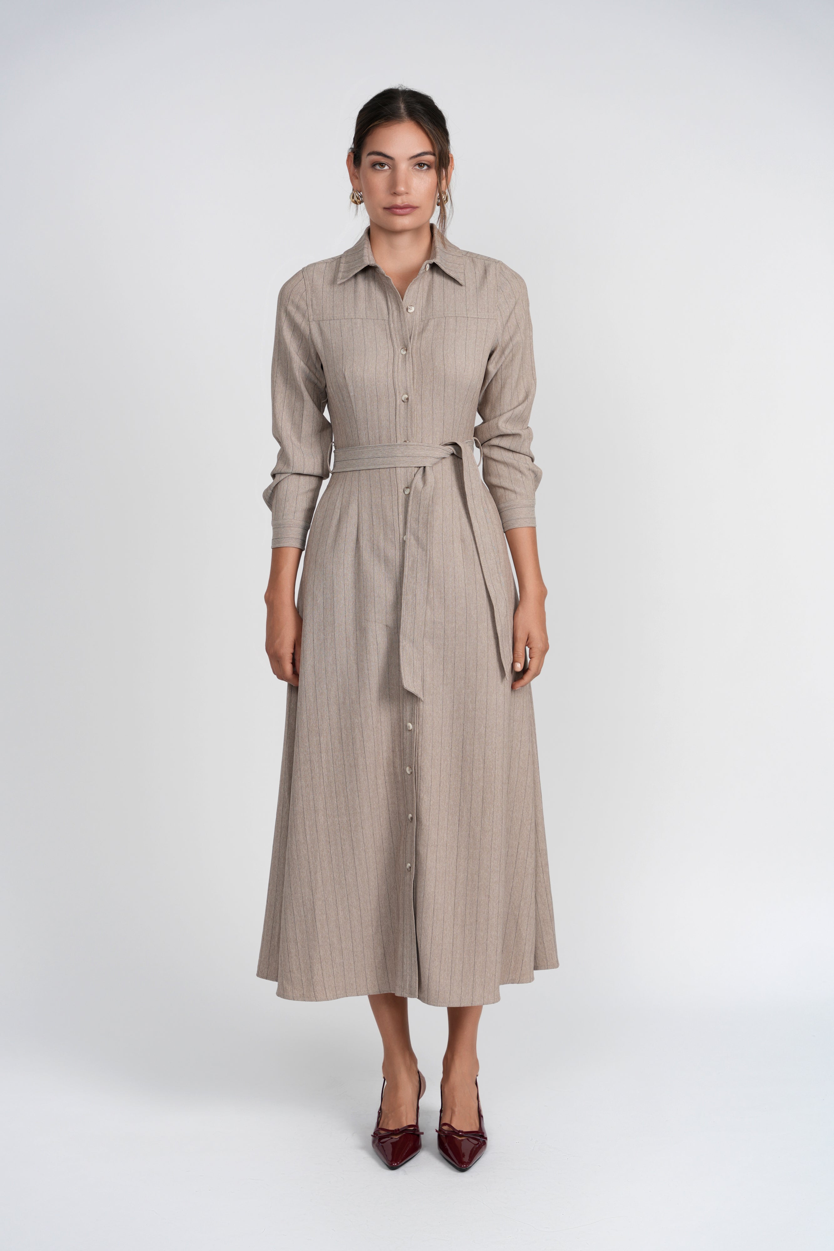 Luum Hazel Cream Pinstripe Buttom Maxi Dress with Belt