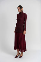 Luum Rose Burgandy Maxi Skirt with Chiffon Pleats