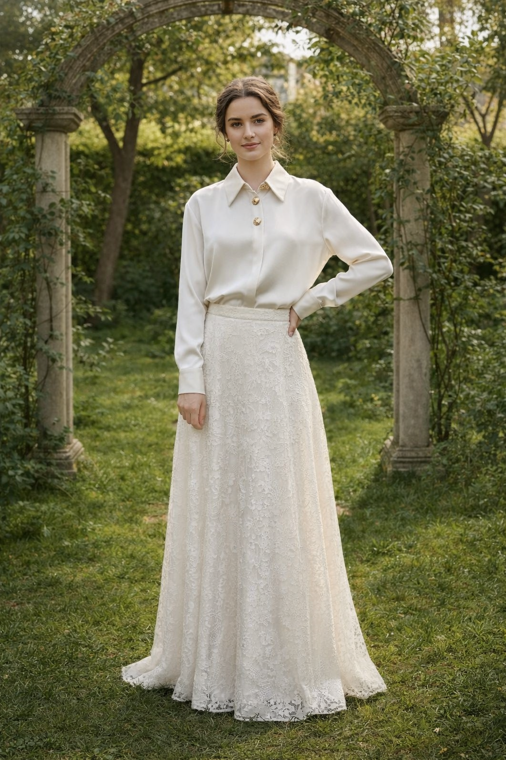 Maple Cliff Silk Blouse with Dramatic Buttons